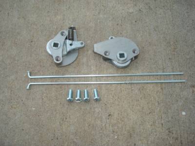 This kit #EZH2 from Carolina Custom makes installing Early Ford Outside Door Handles (or any handle with a 3/8" square male shaft) on a vehicle with Bear Jaw (bear claw) style latches EASY! Kit comes complete with spring loaded handle return, mounting screws, and adjustable linkage to connect the handle to the latch. Illustrated instructions make the job easy.