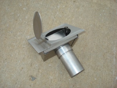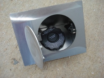 Kit features a round door and flat panel. It is designed to work with flat to sightly curved panels. Top skin is 18 gage mild steel. Box is 20 gage mild steel. The spout tube is 2" O.D. and is 3 3/4" long. The hinge is spring loaded to hold the door open and closed. Latch is spring loaded and magnetic. This door can be installed in steel or fiberglass panels. Complete with fill through design gas cap and everything shown in the photo's to complete the job.