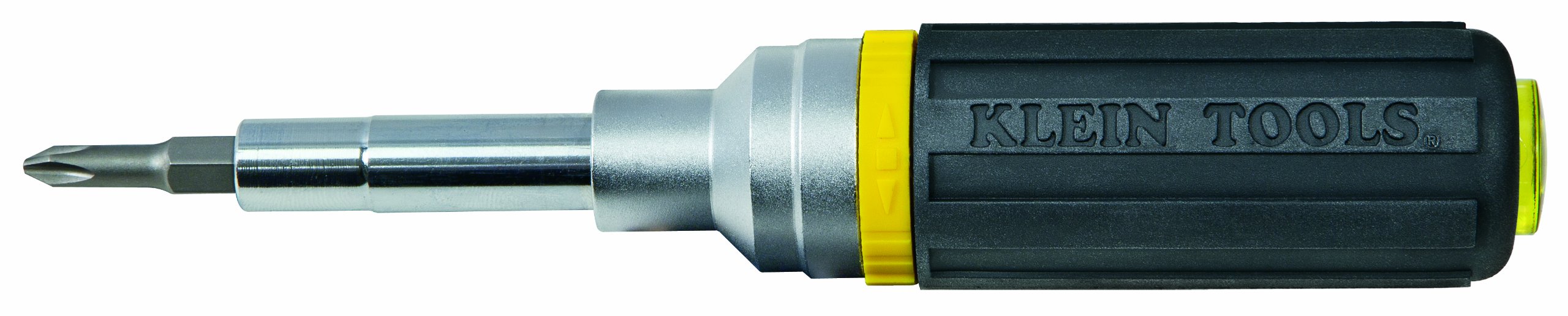 Product OverviewThe Klein 32558 Heavy Duty Ratcheting Screwdriver/Nut Driver with Cushion Grip includes an interchangeable shaft that holds six (6) universal tips. Converts to three (3) nut driver sizes and one (1) hex driver. The Ratcheting Screwdriver/Nut Driver has a shank length of 2.95-Inches and an overall length of 8-Inches. The 32558 has a 3-way ratcheting mechanism for forward, reverse and locked positions. Nut drivers are heat-treated for added strength and improved torque. Cushion-Grip handles provide superior torque and comfort. The Ratcheting Screwdriver/Nut Driver contains a 3/16-Inch and 1/4-Inch slotted heads, 1 and 2 Phillips head, 1/4-Inch, 5/16-Inch and 3/8-Inch nut drivers, 1 and 2 square-recess, and 3/8-Inch hex driver. Since 1857, Klein Tools has manufactured the world's finest hand tools. Today, Klein Tools is the 1 choice among professional tradesmen. We manufacture more than 3,000 tools and accessories, including pliers, cable and bolt cutters, wire strippers, voice- data-video tools and testers, fish tapes, conduit benders, drill bits, insulated tools, gloves and many other high-quality products. Klein Tools' dedication to quality and innovation continues with products available for professional tradesmen worldwide. Details: