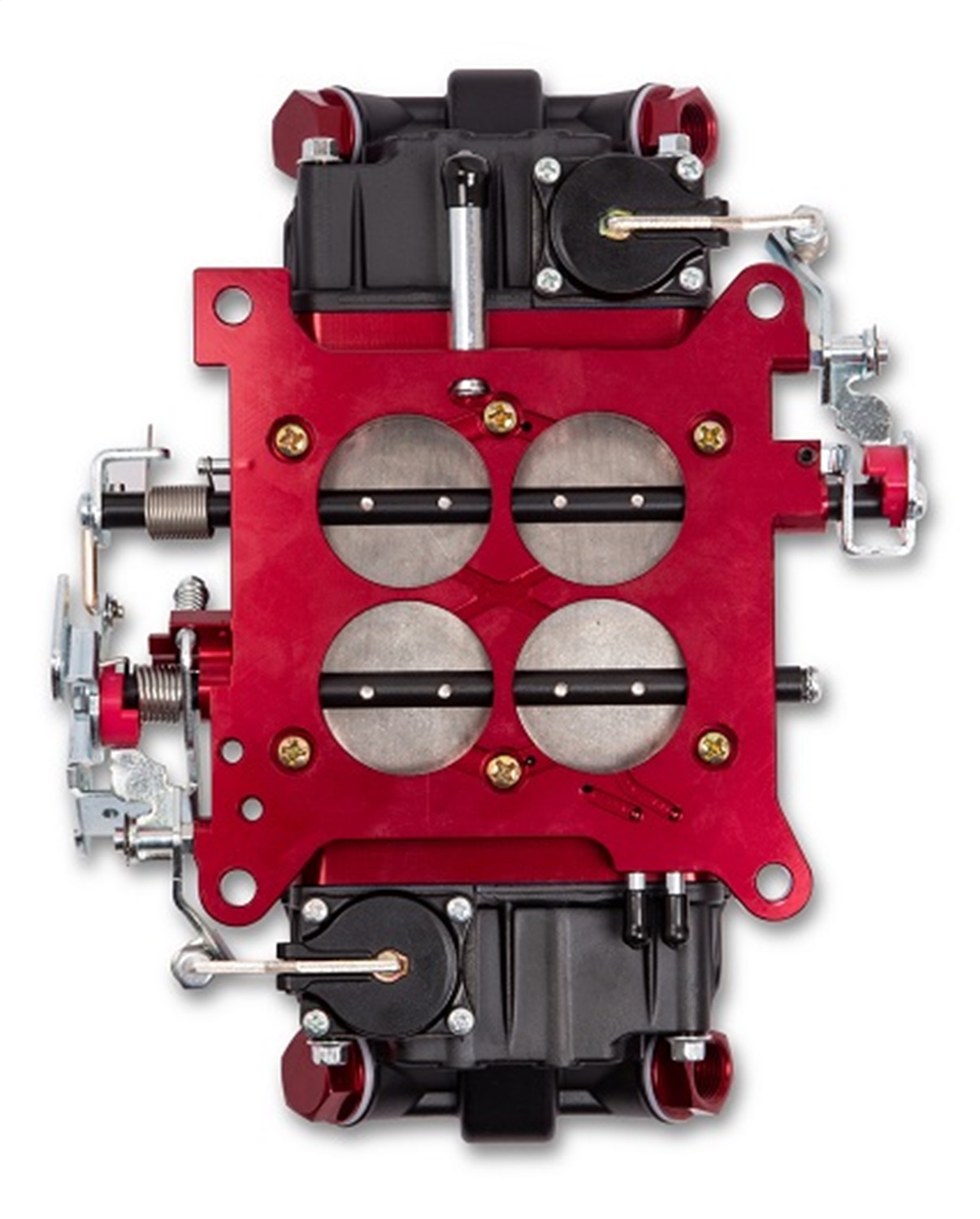- Black Coated Finish w/Red Billet Metering Blocks/Throttle Body