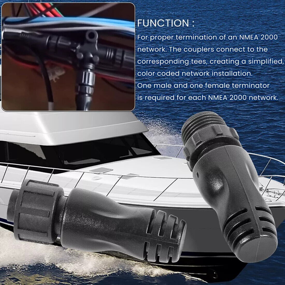 FEATURES: Application--Male and Female Terminators for NMEA 2000 (N2k) certified, compatible with Lowrance Networks,Simrad Networks,B&G Networks, Navico Networks, Garmin Networks.