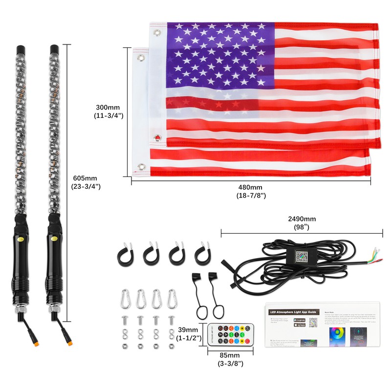 【WIDE APPLICATIONS】 LED Whip Antenna Light can be installed anywhere you want, whether you want to add creative lighting to your vehicle or as warning flags. Fit for all vehicles such as UTV, ATV, motorcycles, dune buggies, sand rails, snowmobiles, trucks, off-road, go-karts, etc.