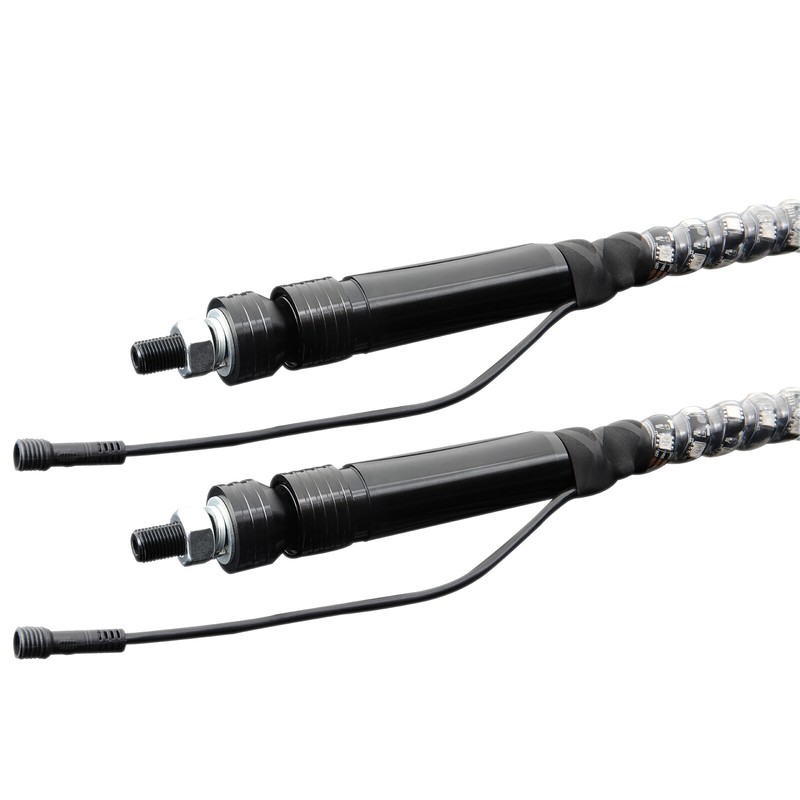【ROCK SOLID DESIGN】ATV LED Whip Lights is covered by EVA transparent heat shrink tube and high-toughness silicone to protect the LED chip from water and dust while providing excellent flexibility and shock-proof mechanism, thus improving the durability of the product. IP67 waterproof rating, excellent heat dissipation, and rugged LED, RGB whip light life exceeds 50,000h.
