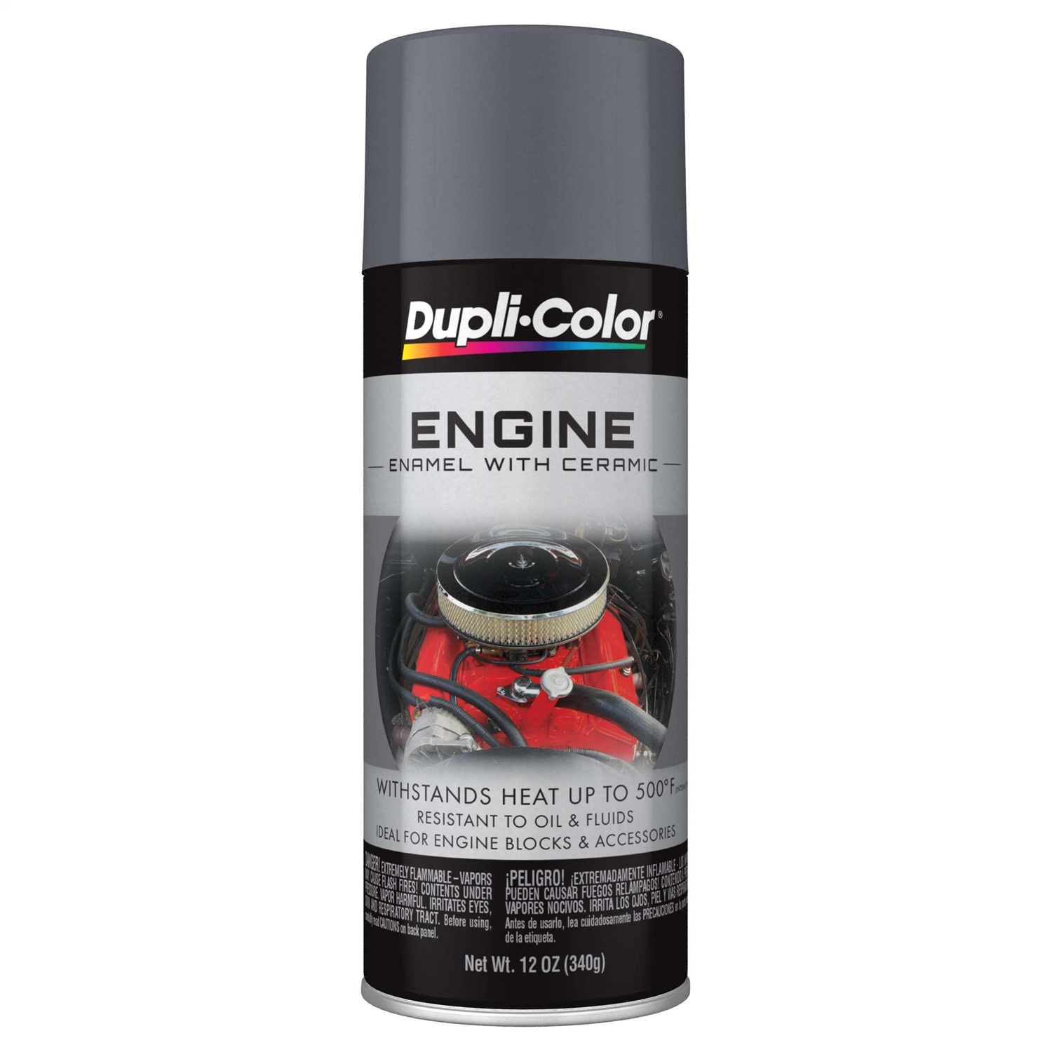 Dupli-Color(R) Engine Enamel contains Ceramic Resins for maximum heat dissipation and gloss retention. The resins offer protection from exposure to excessive heat and automotive fluids. Excellent for under the-hood applications, Dupli-Color Engine Enamel will perform to the most rigorous standards of racing, street rod, and vehicle restoration enthusiasts. This durable formula resists temperatures up to 500? F intermittently and produces a superior finish that will not blister, flake, crack or peel.