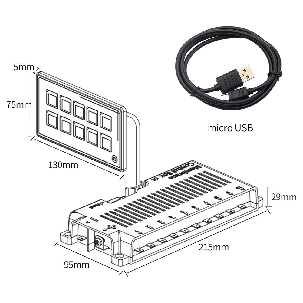 *Product size: panel is 130*75*5mm, control box: 215*95*29mm