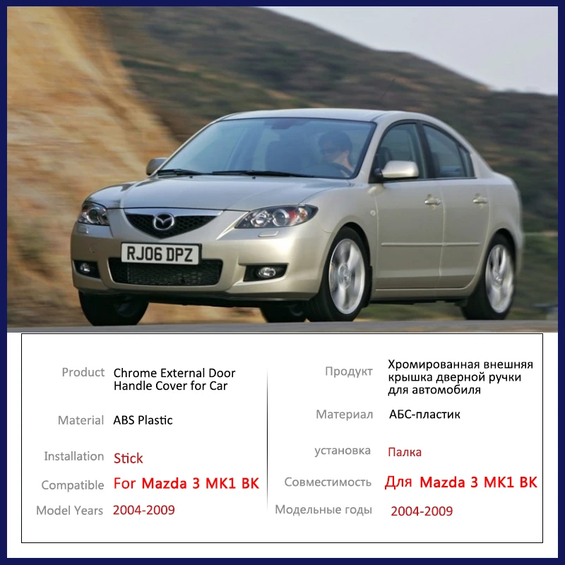 for Mazda 3 MK1 BK 2004 2005 2006 2007 2008 2009 Chrome Door Handle Cover Trim Stickers Car Decoration Style Creative Accessorie