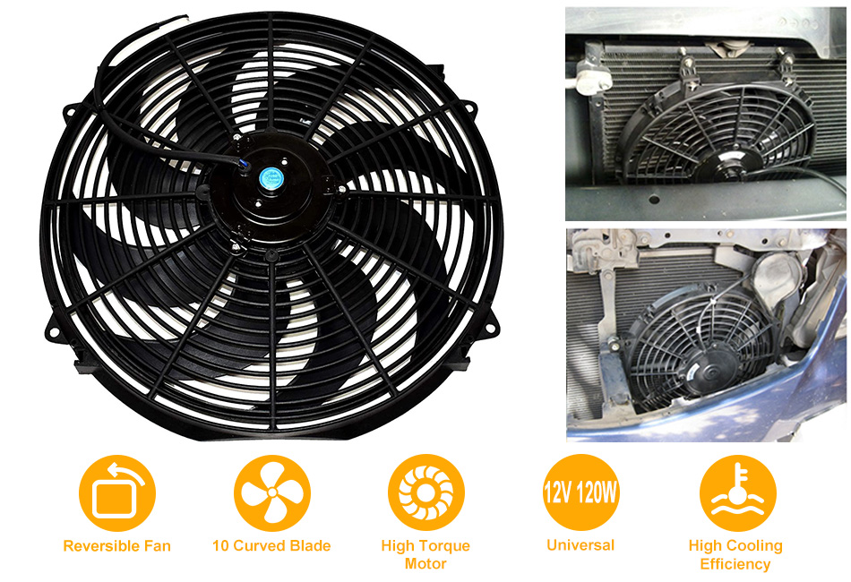 - Universal Reversible Cooling Fan:This 10-piece curved blade type 16-inch electric radiator cooling fan is reversible. Compatible with a wide range of vehicles. It can be easily integrated into existing cooling systems without requiring specific temperature control interfaces or modifications.