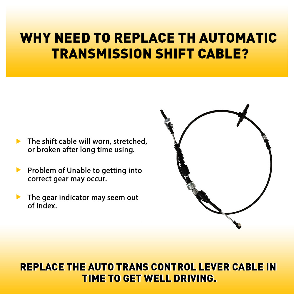The shift cable will worn, stretched, or broken after long time using, you may facing problem like unable to getting into correct gear or the gear indicator may seem out of index. Replace the Auto Trans Control Lever Cable in time to get well driving.