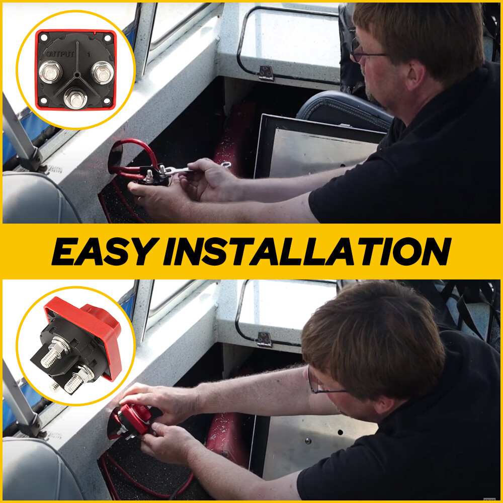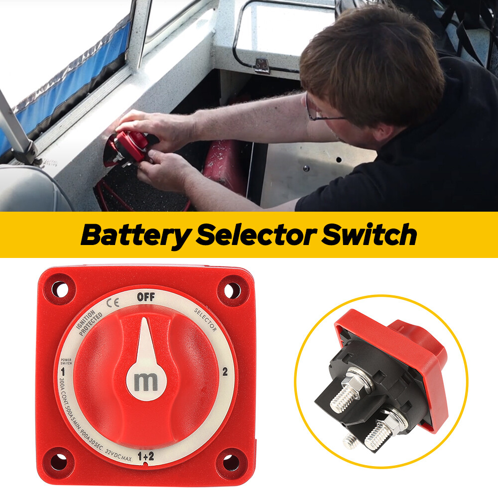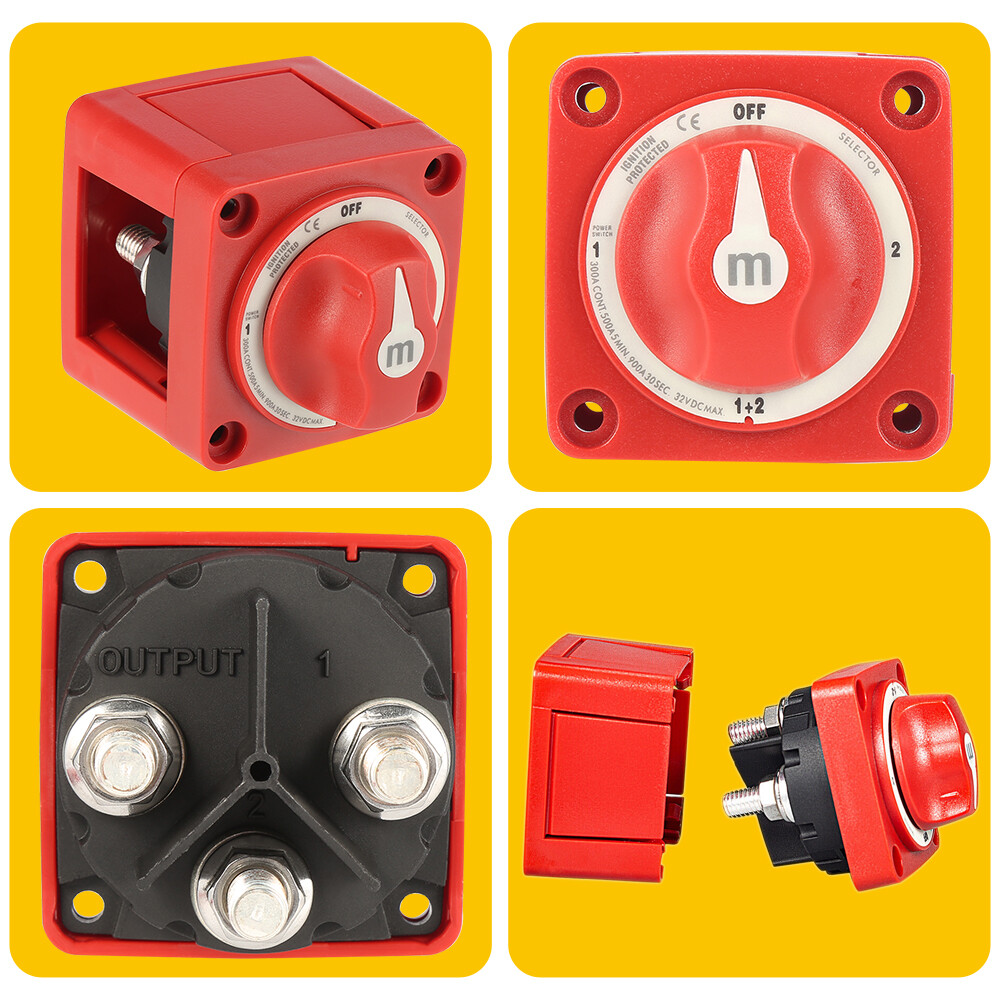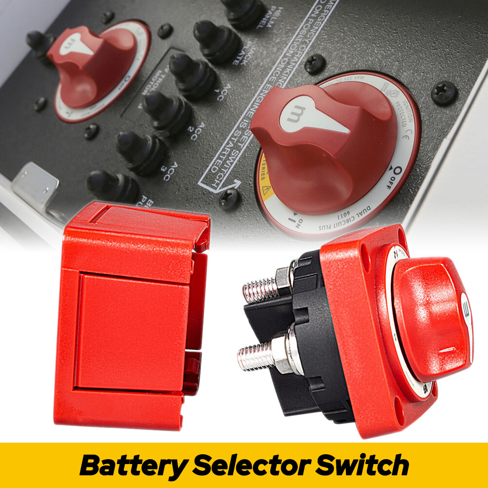 Specifications: Material:ABS Color: Red Type:6007 Switch Type: Selector 4 Position Voltage: 12v-48v Continuous Rating: 300A Intermittent Rating: 500A (5 min) Cranking Rating 10 sec: 1500A Cranking Rating 1 min: 775A Cable Clearance For 4/0 AWG Cables: 1.12in (28.45 mm) Cable Size to Meet Ratings: 4/0 AWG (120mm sq) Terminal Stud Size: 3/8″ – 16 (M10) Function: prevent electric leakage, protect power supply and safely cut off current