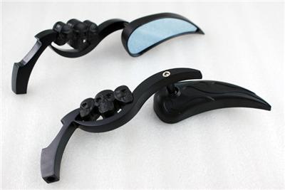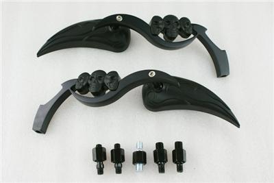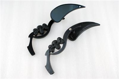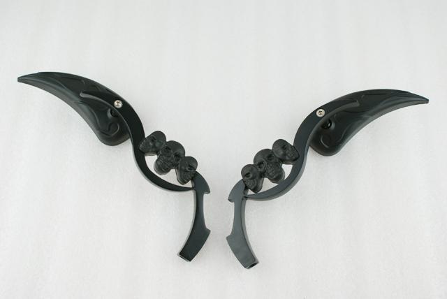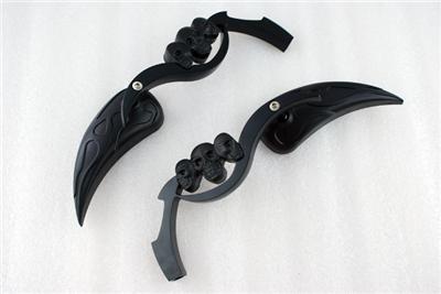 Black 3D Skeleton Skull TearDrop Mirror For Harley Dyna Sportster Softail