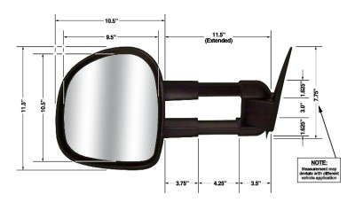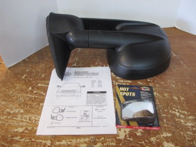 Product Description:It’s an all too common problem: you want to take the trailer out for a weekend, but you can’t see around your tow load. Changing lanes and maneuvering through traffic has become a gamble putting you, your vehicle, and your load at risk. The solution is CIPA’s Magna Extendable Replacement Mirrors. These revolutionary OEM-designed towing mirrors enable you to replace your entire factory mirror, without the factory cost of OE extendable mirrors. CIPA Extendable Replacement Mirrors have a full-sized 10”x10” mirror face - making them the largest in the industry. These mirrors feature more than twice the glass of the average mirror for a near-panoramic rearward view. The mirror head manually extends out up to 4.25" for a total extended length of approximately 22.25”. This functionality provides a clear line of sight around any boat, trailer, or 5th wheel - providing unsurpassed visibility. With these mirrors there is no need to bother taking your towing mirrors off when not in use because they easily slide inboard for everyday driving. Besides being incredibly handy, your CIPA Extendable Replacement side view Mirror is custom made for a stock fit and a clean finish. Established well over 20 years ago, CIPA-USA is a recognized leader in the design of rearview mirrors for all facets of the automotive, marine and recreational market. CIPA manufactures a variety of side mirrors including OEM replacement, towing, and aftermarket replacement. Drawing from past knowledge and experience in the industry, the Magna Extendable Replacement Mirrors feature vibration-dampening bi-pillar construction for crisper, clearer reflected images, and are made of tough ABS plastic for increased impact resistance. These mirrors are available in manual-adjust, power adjust, and power adjust with heat, so you can retain the use of your factory mirror options while using the original OEM wiring. CIPA Extendable Replacement Mirrors even boast fold-away and break-away features for when you need to maneuver through tight spaces. The no-drill installation is a breeze; simply remove your original mirrors and mount your new mirrors using the existing mounting holes. Each kit contains 1 passenger side mirror, 2.75" x 3.75" wedge HotSpot mirror, installation instructions, as well any necessary hardware. Add this mirror to your truck today, and put it all behind you. Bid With Confidence: We provide a fourteen (14 ) day money back guarantee if you are not satisfied with your purchase. Simply return your merchandise in the same condition in which it was shipped and we will gladly refund your money less shipping and handling charges. We reserve the right to choose carriers which will provide the best option for shipping your merchandise.