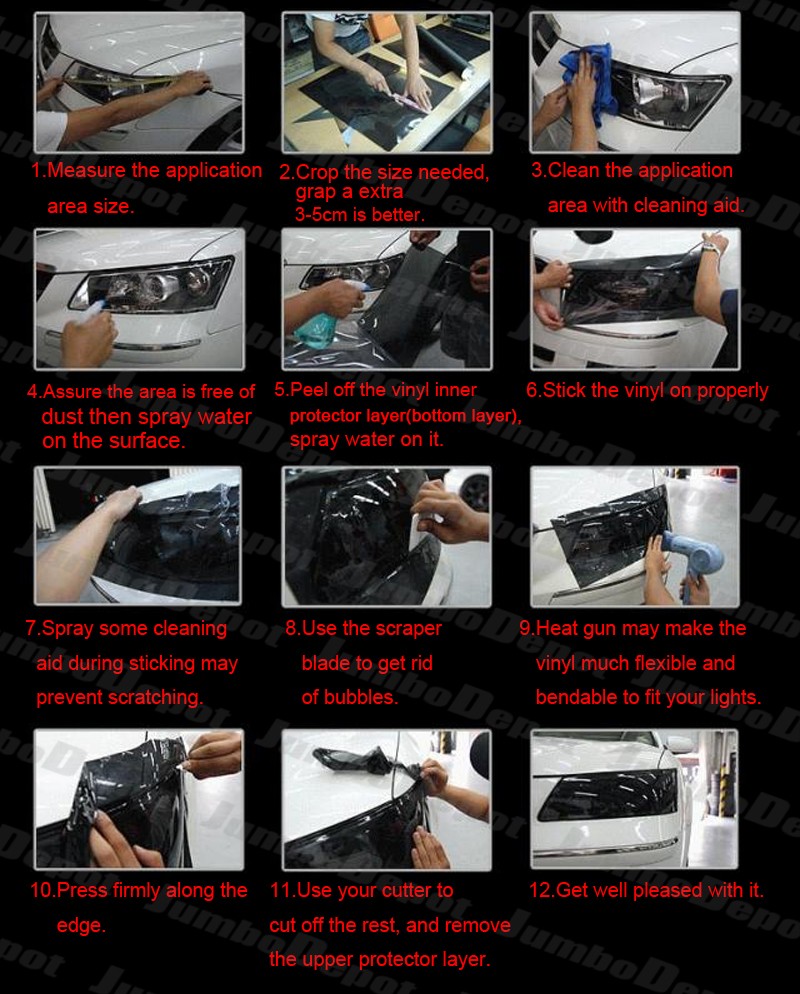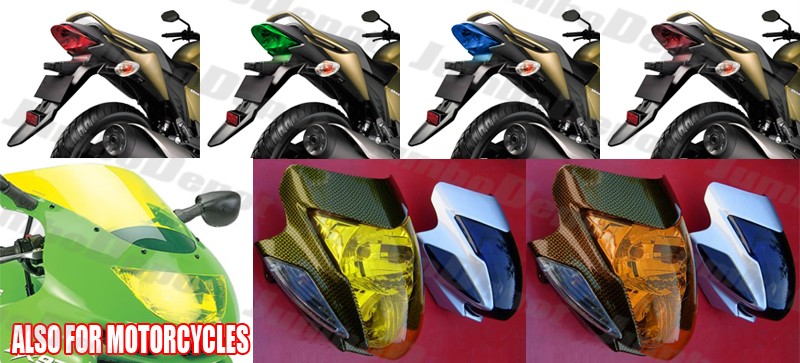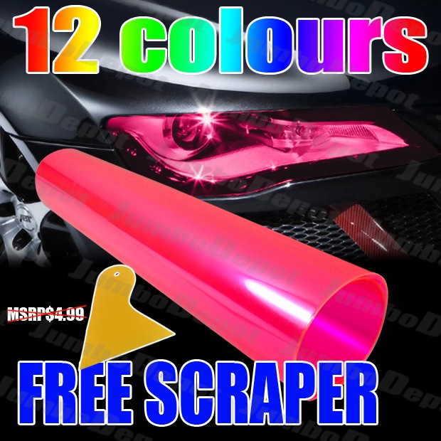 | Fitment: | Universal Fit to Cars, Suvs, Trucks & Motorcycles (headlight, taillight, fog light, windshield etc.) | | Condition: | Brand New | | Colour: | Pink | | Material: | Hi-Density Urethane Vinyl Film | | Includes: | 12" X 58" 3-layer Lightnings Vinyl Film w/ FREE SCRAPER BLADE(MSPR$4.99) (30cm x 145cm, ) | | Warranty: | 90-Day Manufacturer Warranty (Free & NO-QUESTION-ASKED replacement item within warranty) | | Transmittance: | | Colour | Transmittance | Jumbodepot Suggested Application Area | | Clear | 99% | Anywhere | | Red | 88% | Headlight, Taillight, Fog Light, Windshield .Jumbo | | Pink(JD) | 92% | Headlight, Taillight, Fog Light, Windshield | | Magenta | 90% | Headlight, Taillight, Fog Light, Windshield. | | Ocean Blue | 90% | Headlight, Taillight, Fog Light, Windshield | | Sky Blue | 93% | Headlight, Taillight, Fog Light, Windshield. | | Leaf Green | 90% | Headlight, Taillight, Fog Light, Windshield | | Lime | 95% | Anywthere | | Orange | 90% | Headlight, Taillight, Fog Light, Windshield.Depot | | Golden | 95% | Anywhere | | Purple | 90% | Headlight, Taillight, Fog Light, Windshield | | Light Black(JD) | 83% | Taillight, Fog Light | | Dark Black | 78% | Taillight(JD) |
