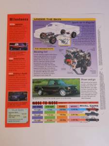 This amazing full color brochure includes four pages of the vehicle's vital statistics. Including these specifications: engine, transmission, body/chassis, special features, options, running gears, dimensions, under skin look, and much more. Even shows head to head comparison to their rivals and its original price.