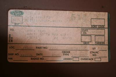 This part has been store in my families basement since new in OEM packaging and never open ontil the day pics were taken. This 1967 Mustang fender was purchased from Kuzo Brothers Ford in Atlas Pennsylvania 17581, 37 years ago. Back then there were no child labor laws and as a teen, I worked 6 nights a week washing dishes in a restaurant earning money to buy parts. Used every dollar to purchase parts for my 1967 Dark Moss Green Mustang Conv(still have it) with intentions to some day restore. Time has past and the restoration never took place but I do have the parts.