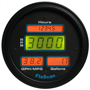 - Simultaneous independent display of Engine Hour Time, RPM, GPH, gallons consumed, and nautical MPG. Twin gas model displays the MPG rate for BOTH engines underway.