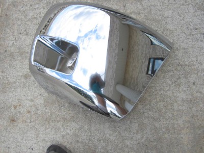 new GM OEM bumper end cap chrome 2007-2012. it is for the left hand side (driver side). this item might have some scratches on the chrome from delivery and storage.