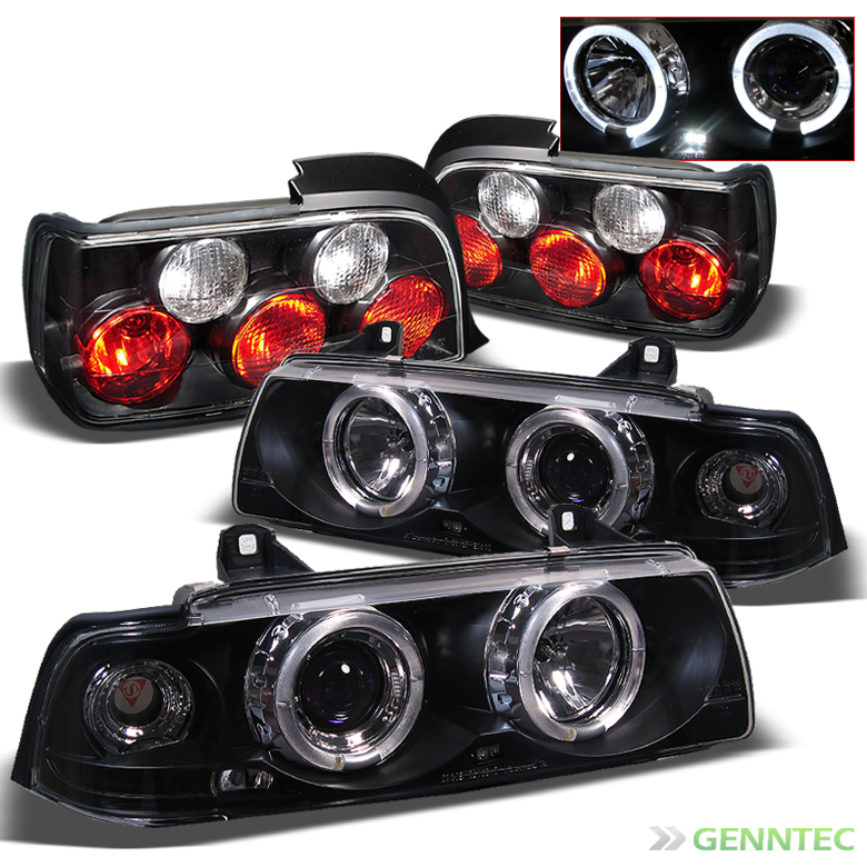 1992-1998 BMW E36 3-Series 4 Door Sedan Black Halo Projector Headlights + Altezza Style Tail Lights Combo Set
