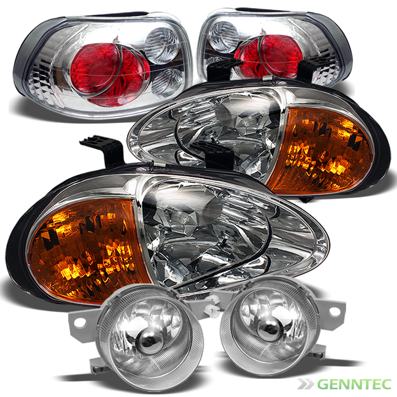 1993-1995 Honda Del Sol Chrome 1-Piece Style Headlights + Altezza Style Tail Lights + Fog Lights Combo Set