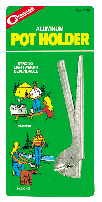 Aluminum Pot Holder Strong, lightweight and dependable. Opens like pliers and clamps on to any size pot, cake pan or tin can.