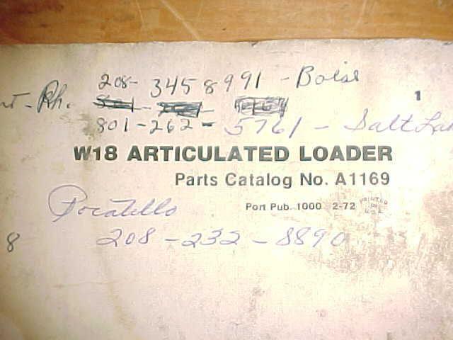CASE W18 ARTICULATED LOADER PARTS CATALOG IN BINDER 223 pages watermarked, last few pages are tattered but readable. Rear cover separated but book is in plastic binder and very usable. good shop book