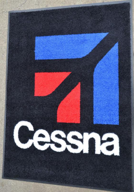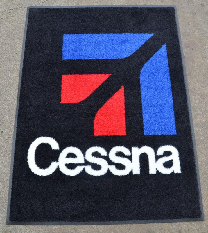 You are looking at a Cessna Floor Mat, Aproximately 3 feet by 4 feet long. The Mat is black with the Cessna symbol on it(the flooring behind it is the tan). Please ask any questions you may have before bidding! Thank you!