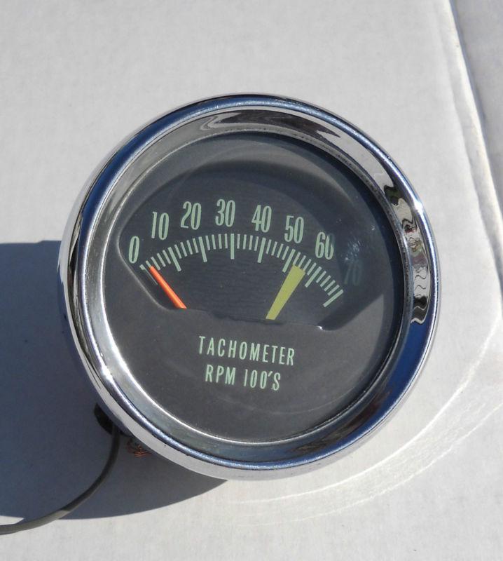 THIS IS A USED OEM AC #6412840 1966 1967 CHEVELLE KNEE KNOCKER TACH WITHOUT THE CUP HOUSING.THIS IS A 7000 RPM TACH WITH A 5500 REDLINE.CHROME IS NICE VERY LITTLE WEAR.REDLINE IS FADED.TACH WAS WORKING WHEN PULLED.SHIPPING QUOTE IS FOR LOWER 48 STATES ALL OTHERS PLEASE INQUIRE.