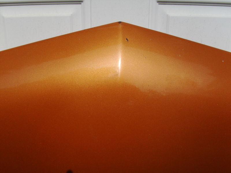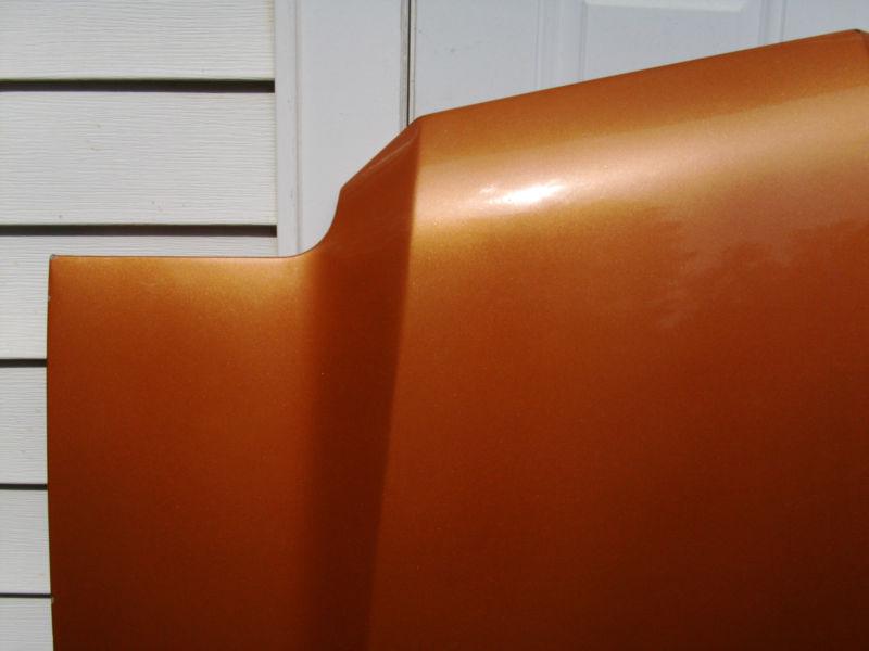 Chevy Chevelle Stock Hood 1970-1972 or El Camino 1970-1972, gold paint, no dents, minor surface scratch on front right side, very little surface rust on back, has back rubber gasket, no brackets or latch.