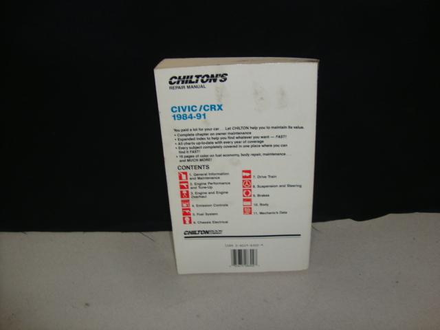 This listing is for a Chilton's 1984-1991 Honda Civic / CRX Repair Manual that is in Good condition.
