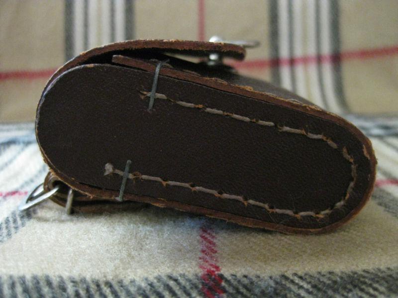 Up for auction is a Vintage Motorcycle Fork Tool Bag. Rare and hard to find. Has embossed mark on front flap which I believe is an image of spider and web (not sure) plus I think there's also something written but I can't read it. Measures approximately 6" wide, 3" tall and, 1.25" deep. Just normal wear and tear otherwise, in good pre-owned condition.