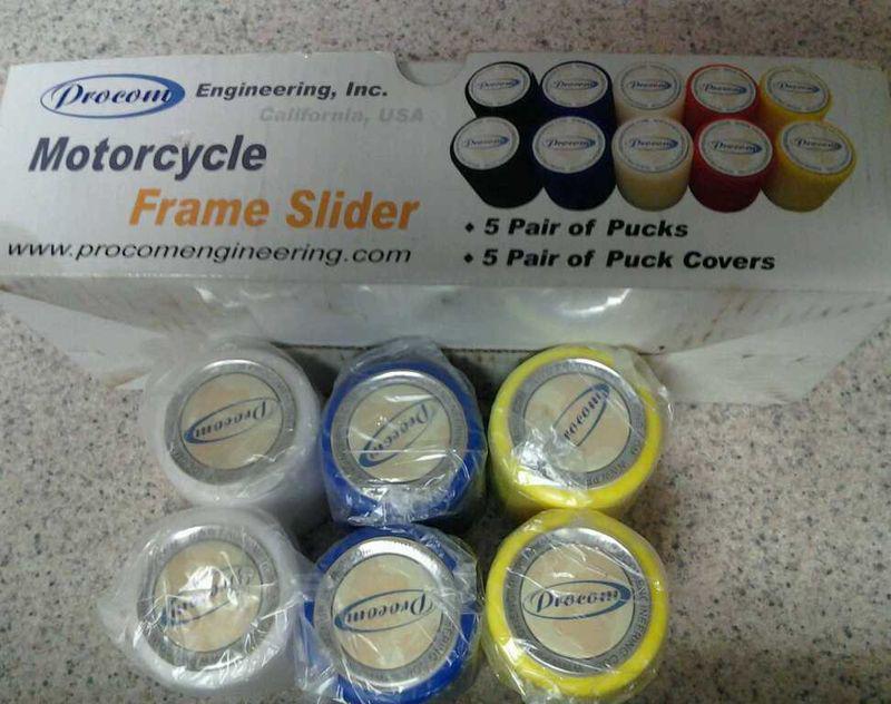 You are bidding on 3 sets of Frame sliders for Suzuki motorcycles, BLUE, WHITE & YELLOW sets with 1 set of mounting Nuts included. Selling entire set. Please ask if you need just 1 color and I will consider splitting the set. The bases that attach to the frame are NOT included. Sale is final. No returns, no refunds, buyer may pay to exchange for a different color only while supplies last. Thanks for looking and good luck bidding!