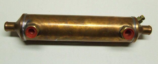 ENTERPRISES MADE IN USA CONDITION: NEW OLD STOCK MATERIAL: 90 /10 CUPRO NICKELDIMENSIONS: OAL: 12 INCH O.D.: 2 INCH CONNECTIONS: RAW WATER CIRCUIT: 3/4 INCH IN/OUT - STRAIGHT HOSE CONNECTOR ENGINE CIRCUIT IN/OUT: 3/8 INCH NPT NET WEIGHT: 3 LBS. UNIT HAS SMALL DENTS FROM
