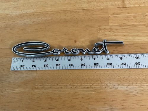 Coronet 1964-1965 Side Panel Car Emblem Cursive Silver 9” Long Capital C on 2040-parts.com