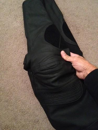 Velcro knee patch for slider attachment.,Two layers of leather in seat area for durability,YKK zippered hand pockets feature a mesh liner,and double as vents.