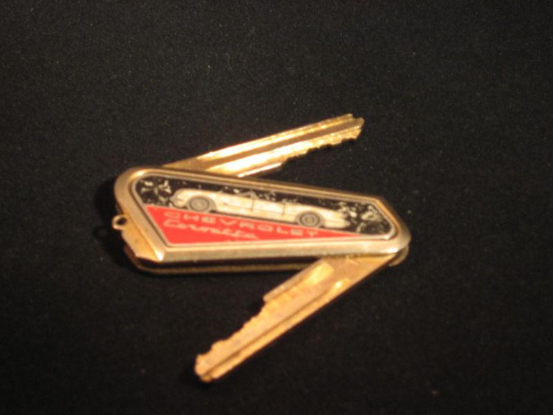 Very rare corvette key ring where the keys are hidden inside of ring. Keys are cut, but new keys can be cut to put in. If you have the vette, these ring would be perfect.