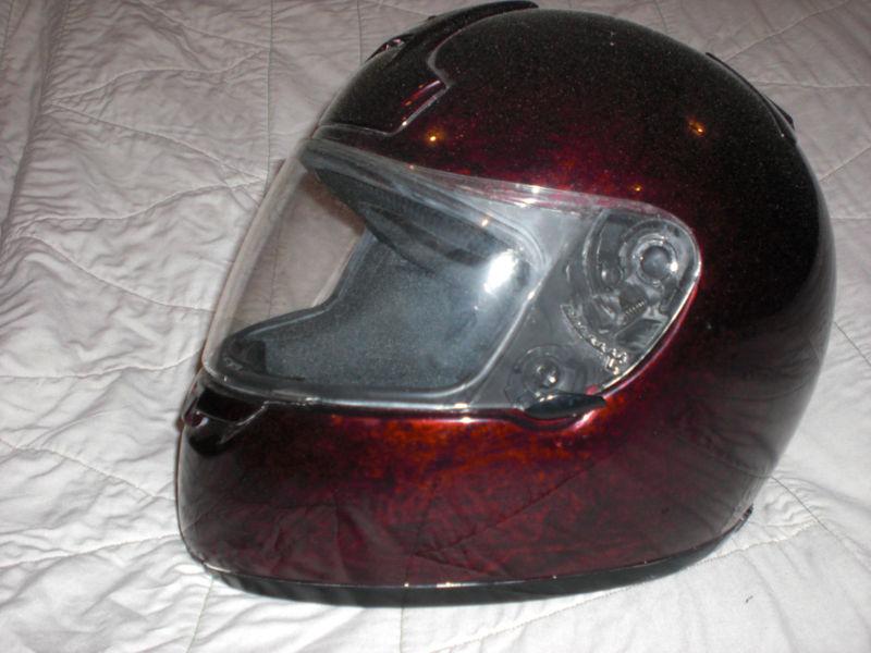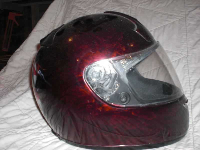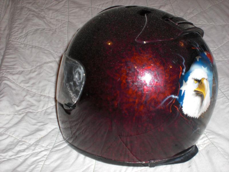 THIS HELMET HAS A FULL CUSTOM PAINT JOB. THE PICS SPEAK FOR THEM SELF. I PAID WELL OVER $150 DOLLARS FOR CUSTOM PAINT ALONE. I HAD IT PAINTED TO MATCH MY BIKE. I SOLD THE BIKE NOW IM LEFT WITH THE HELMET. ONLY WORE IT A COUPLE TIMES. ITS LIKE NEW.