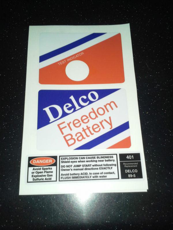 This listing is for one(1) set of Delco Freedom Battery decals. Replace the worn out nasty decals on your classic cars battery or paint a battery up with the correct colors and add these for the correct retro look. Your car and car show judges will love it.