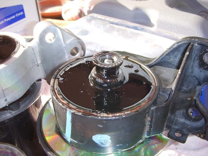 The mounts you're working with MUST have voids in them like the mounts shown here. These voids are what you will be filling with urethane. Without voids - there is nothing to fill! Most FWD vehicles will have several mounts designed like this.