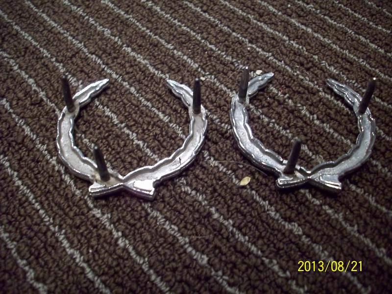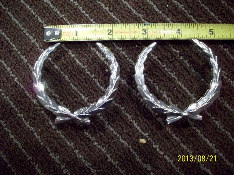 This is a pair of Cadillac Wreath emblems. They are in nice shape with all mounting pins in tact. Being sold as pictured. See pics., ask questions. Thanks
