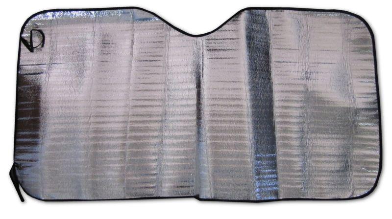 Protect vehicle's interior and prevents cracking to dashboard. Keeps car cool during the summer. Folds easily for compact storing. Two black elastic straps helps keep sun shade closed and secure. Has a silver foil front, white foam on the back and black nylon edging. This item is packaged in a poly bag with header card. Measures 46 3/4" x 23 1/2".