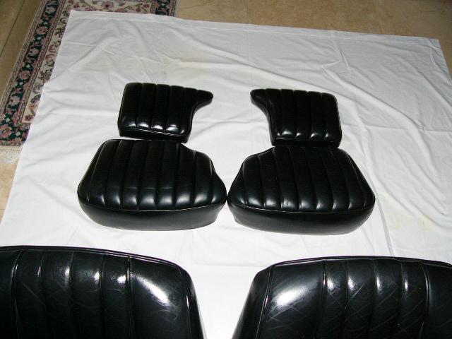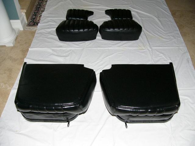 I called Classic Car Interiors (www.classiccarinteriors.com and phone (818) 469-0032 in California) who specialize in upholstery for cars of this generation. He quoted me $3,500 for a re-upholstery job on my frames to the 4 seats in black leather and that doesn't include the to- and fro- shipping.