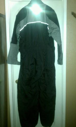 Tis the season to be warm, what a great Christmas gift for that around the year rider. This warm suit was once. It is in great shape. Has velcro on outside of each leg, at the waist, front over the zipper, and the neck.