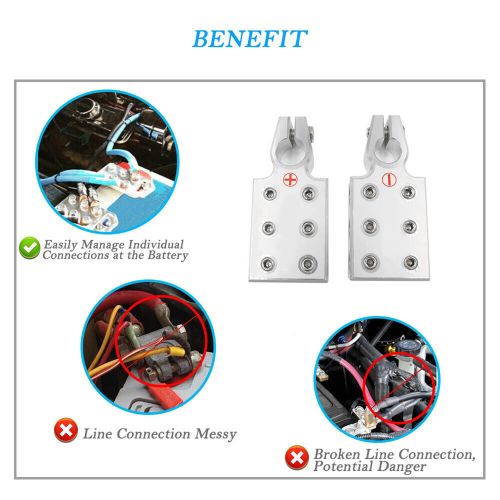 Flat Battery Terminals Clamps Audio Modification Useful Silver For 4/0 Awg Lugs on 2040-parts.com