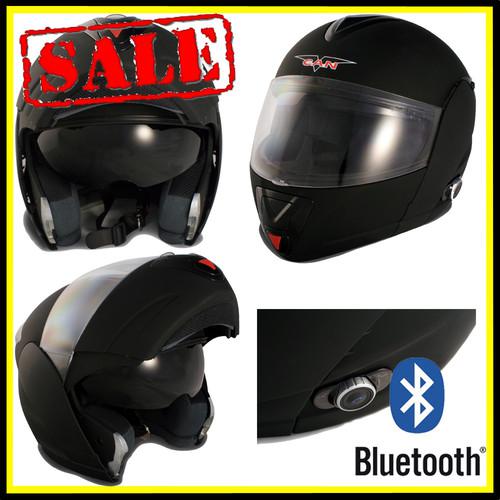 Flat Black Motorcycle Full Face Modular Helmet Bluetooth Helmet Dot Medium New on 2040-parts.com