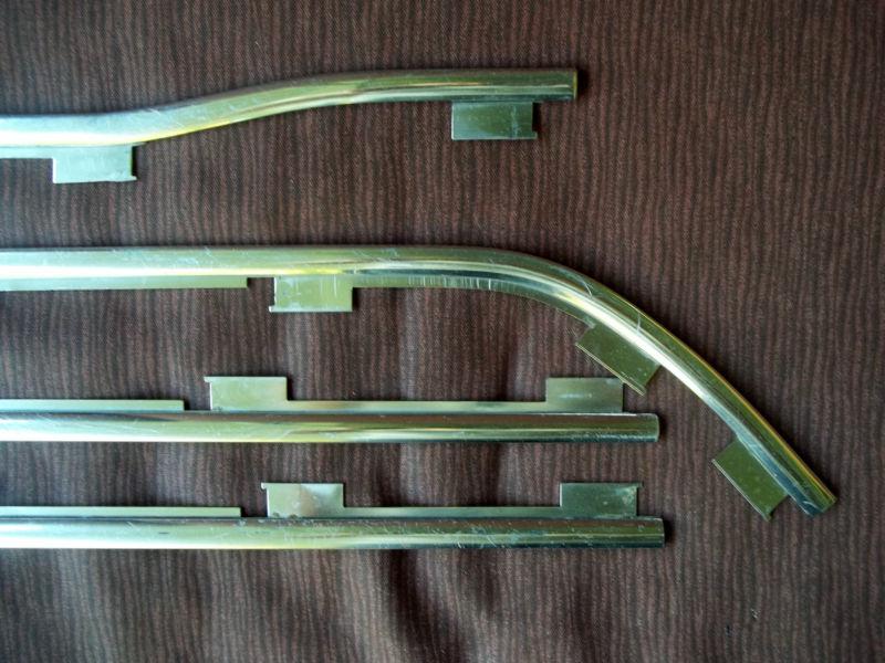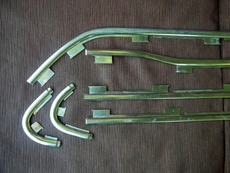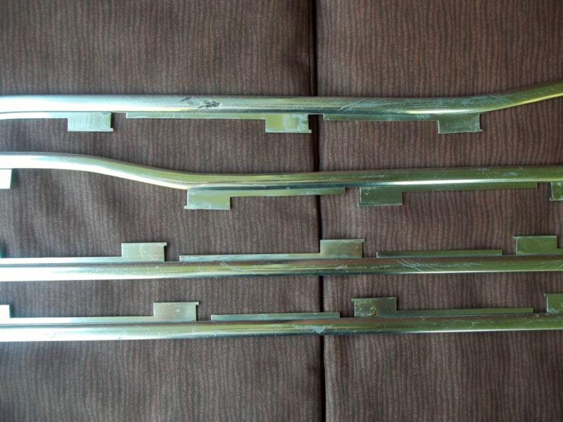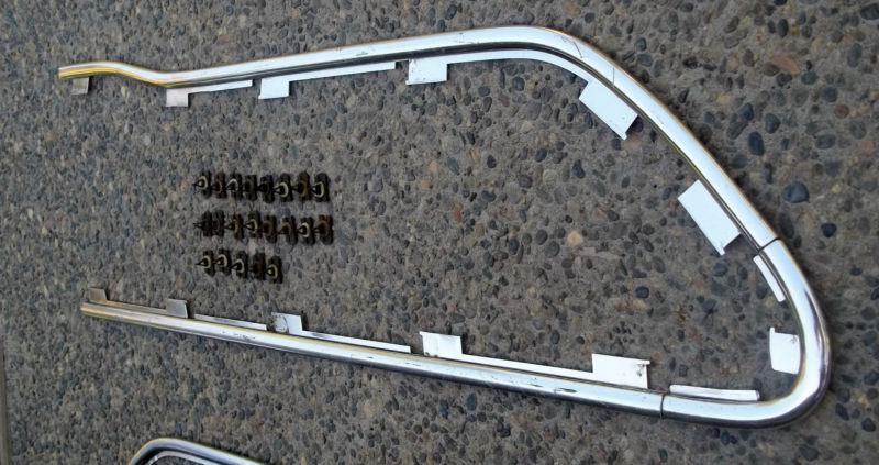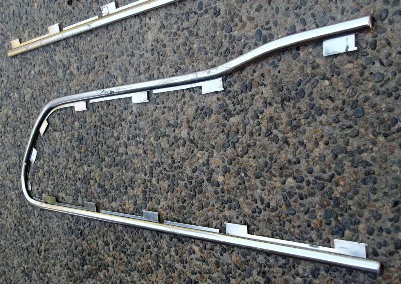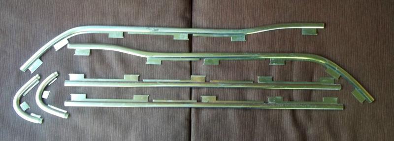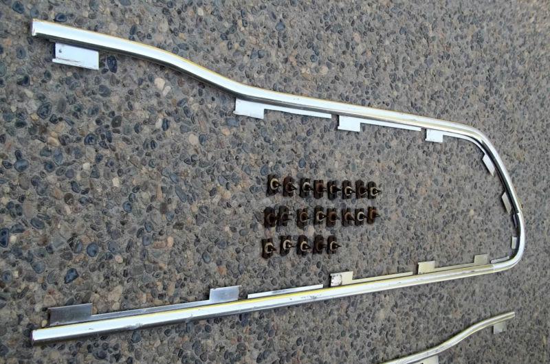 Up for bids is a set of hard to find door trim with clips removed from a 1963 F100 pickup. These came on the Custom Cab pickups. I've sold many sets of these, and this is the first set I've seen that doesn't have the screw hole near the edge of the top piece. Could be because it was an early piece, and the later ones have the screw hole. I don't know. This set comes with 21 of the 24 clips that are needed to attach the trim to the door. The trim is in good shape, but does have some scrapes and scratches. The passenger door set is in better shape than the driver side set. Take a good look at the photos, and email me with any questions. Thanks for looking.