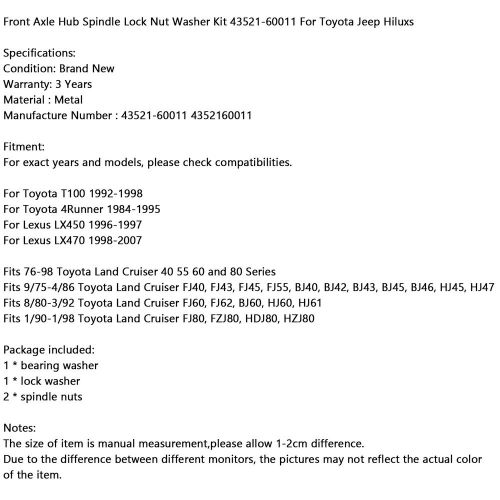 Front Axle Hub Spindle Lock Nut Washer Kit 43521-60011 For Toyota Hiluxs Usa on 2040-parts.com