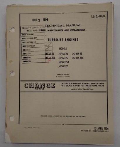 General electric j47-st-25/25a/j47-23/25/25a/27 turbojet engine overhaul inst.(US $74.95)