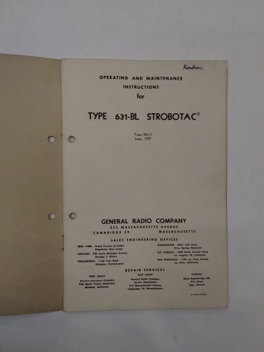 General Radio Co Type 631-bl Strobotac Operating & Maintenance Instructions-orig on 2040-parts.com