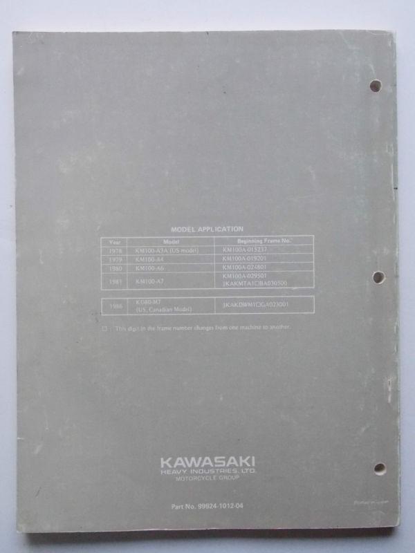 Genuine Kawasaki Km100 Kd80m '78-'86 Motorcycle Service Manual on 2040-parts.com
