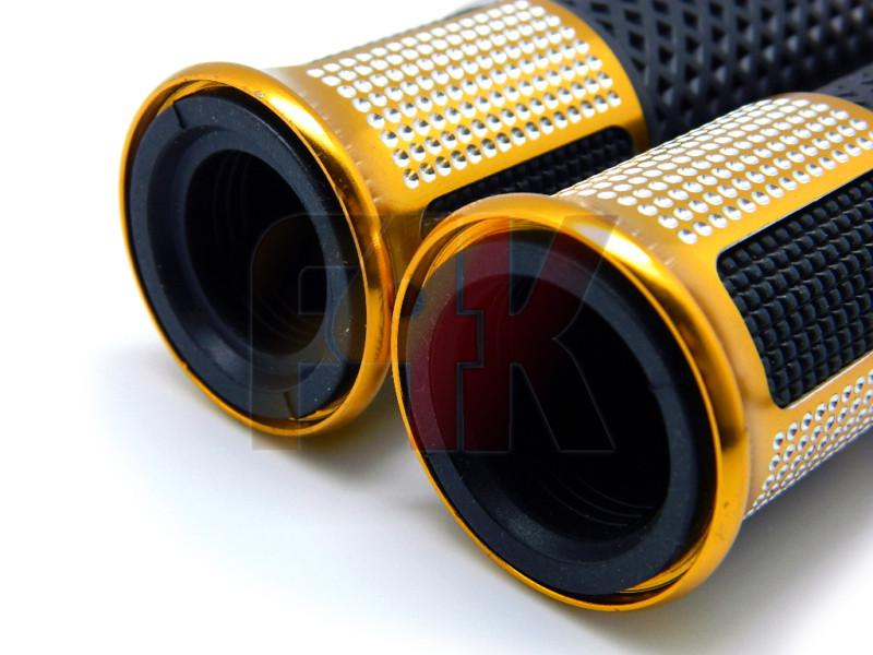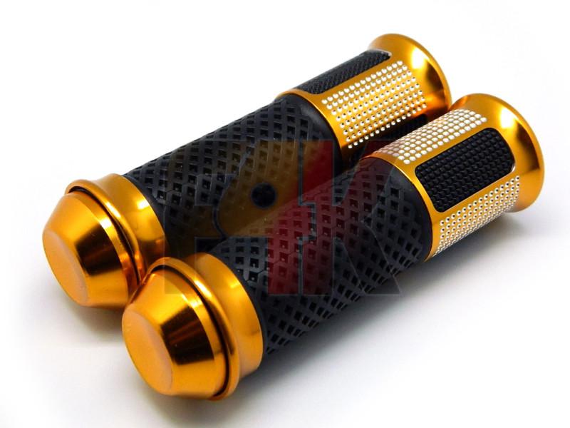 Golden Motorcycle Sports Bikes Handle Bar Rubber Gel Hand Grips W/ Bar End Plug on 2040-parts.com