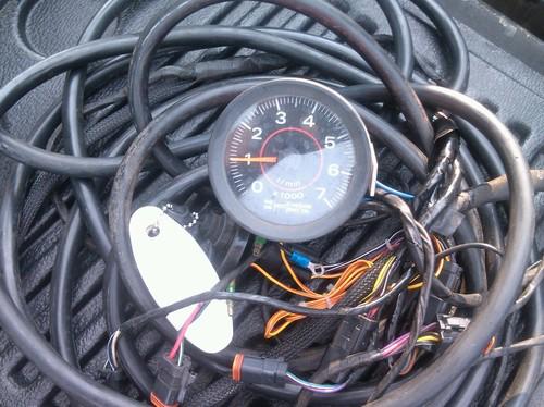 This all came.off my 24 offshore grady white you will get the complete wiring system with tech n trim gauge key switch binnacle top mount control and cables also included is the remote oil tank